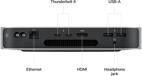 מעבד: Apple M2 — שבב דור שני של Apple Silicon עם 8-ליבות CPU (4 ליבות ביצועים + 4 ליבות יעילות), ו-10-ליבות GPU מובנות לביצועים גרפיים גבוהים במיוחד ביחס למחשב שולחני קטן.